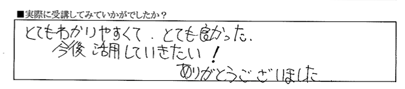 とてもわかりやすく、とても良かった。今後活用していきたい!ありがとうございました。