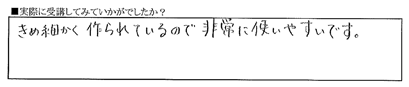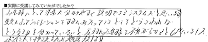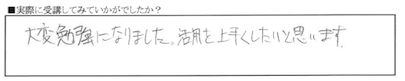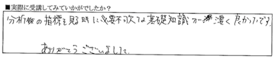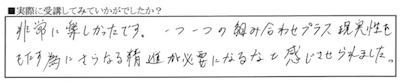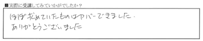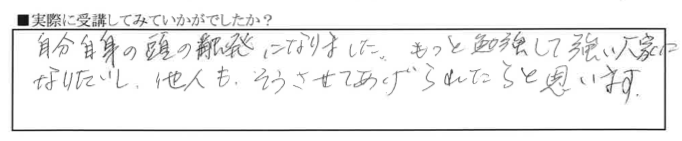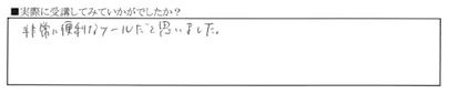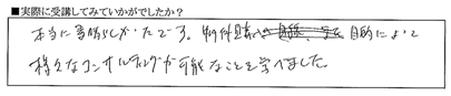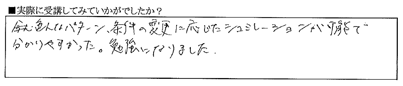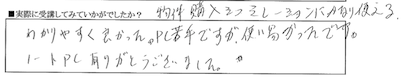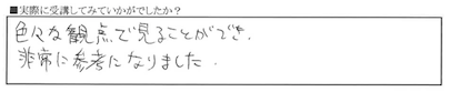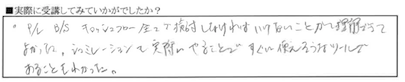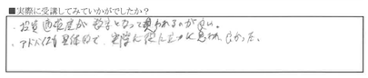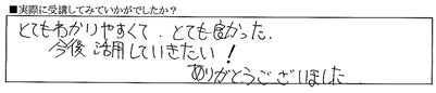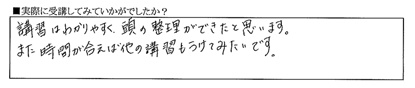 講習はわかりやすく、頭の整理ができたと思います。また時間が合えば他の講習もうけてみたいです。