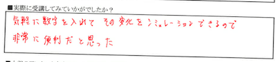気軽に数字を入れてその変化をシュミレーションできるので非常に便利だと思った。