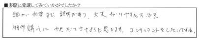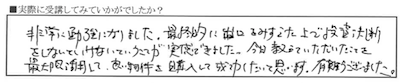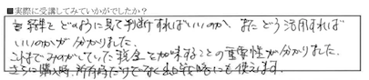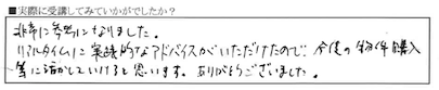 非常に参考になりました。リアルタイムに実践的なアドバイスが頂けたので、今後物件購入等に活かしていけると思います。ありがとうございました。