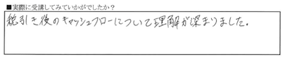 実際に入力して、キャッシュフロー等がその場でわかりよかった。