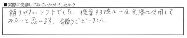解りやすいソフトでした。提案する際に一度実際に使用してみたいと思います。ありがとうございます。