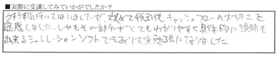 知らない業界のセミナーでしたが、思っていた以上に楽しかったです。午後の数時間だけで管理画面に慣れることが出来ました。ツールを利用しつつも現場の声も取り入れて購入する感覚が凄いと思いました。