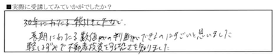 出口を考えたアドバイスの重要性を感じました。相続対策上も非常に参考になりました。ありがとうございました。