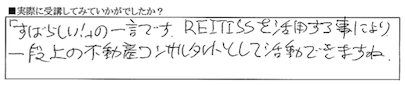 「すばらしい!」の一言です。REITISSを活用する事により一段上の不動産コンサルタントとして活動できますね。