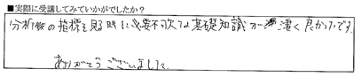 分析の指標を見る時に必要不可欠な基礎知識が凄く良かったです。ありがとうございました。