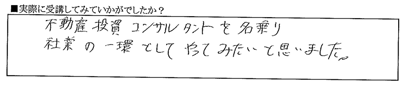 不動産投資コンサルタントを名乗り社業の一環としてやってみたいと思いました。